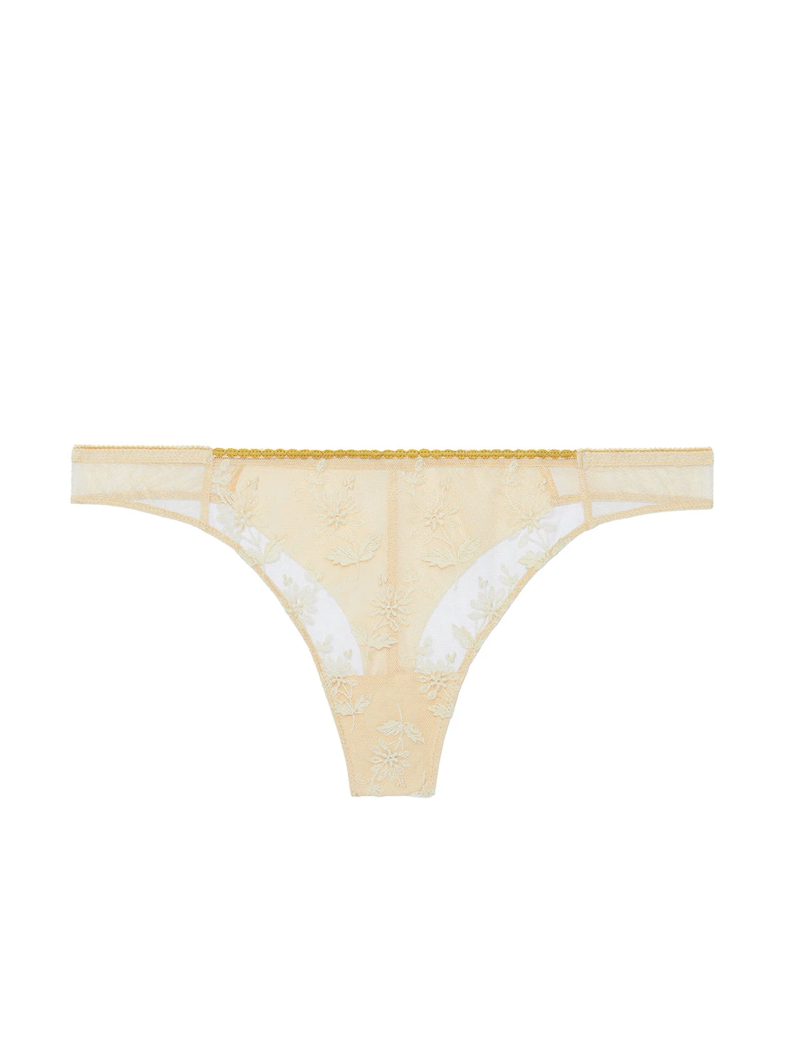 This line by Simone is a hit, with retro embroidery accentuated by more zingy accents. Romantic and playful. Tanga in embroidery 100% made of recycled polyester.
