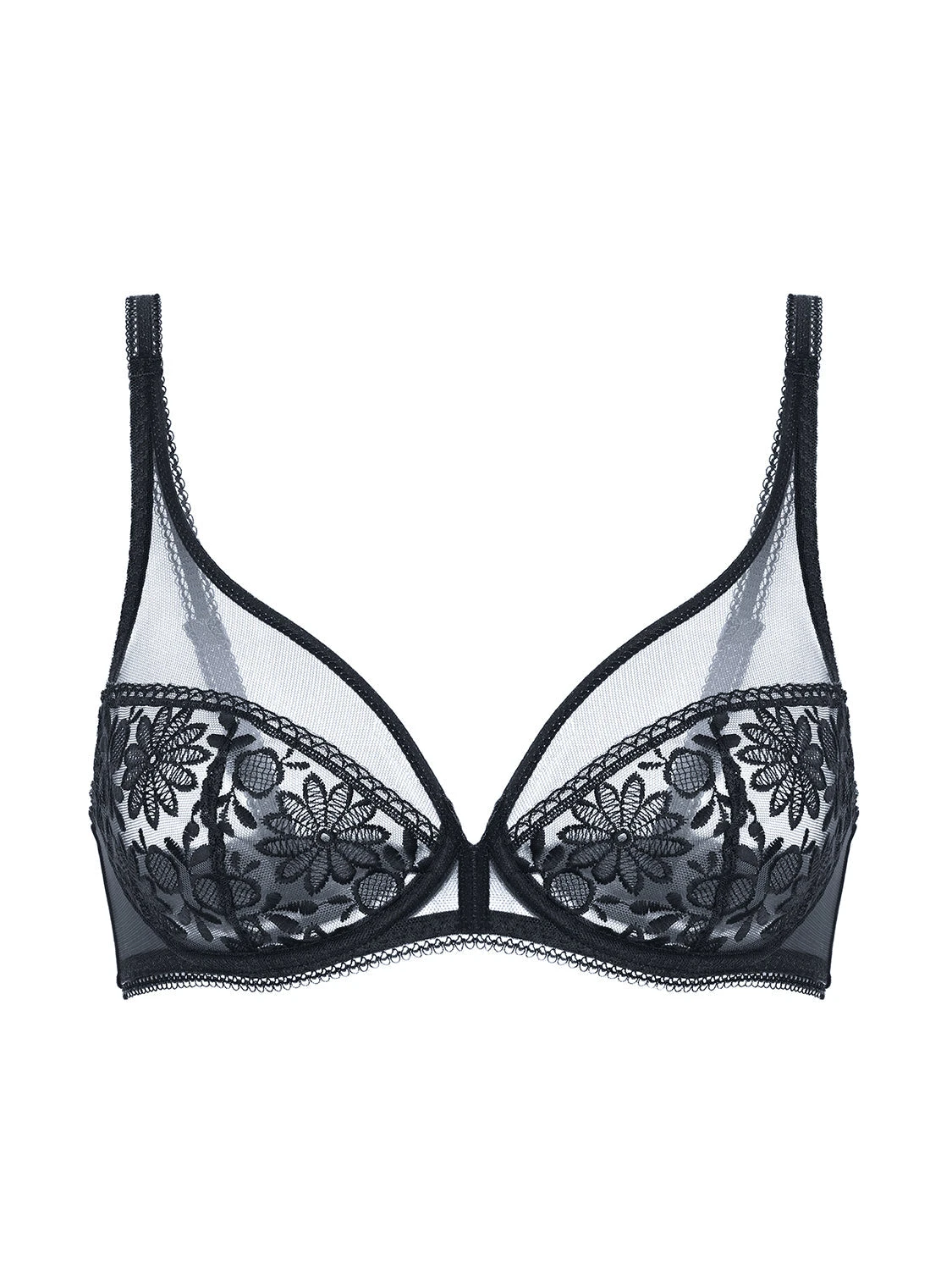 Visually striking in classic the Amazone Full Cup Plunge Bra combines bold floral embroidery with sheer tulle to create a seductive play of pattern on skin. Perfect for all bust sizes, this underwired bra supports curves with its triangle-cup design and is ideal for plunging and v-shaped necklines that call for natural cleavage. Adjustable, multi-position straps make it easy to customise for every occasion and outfit.