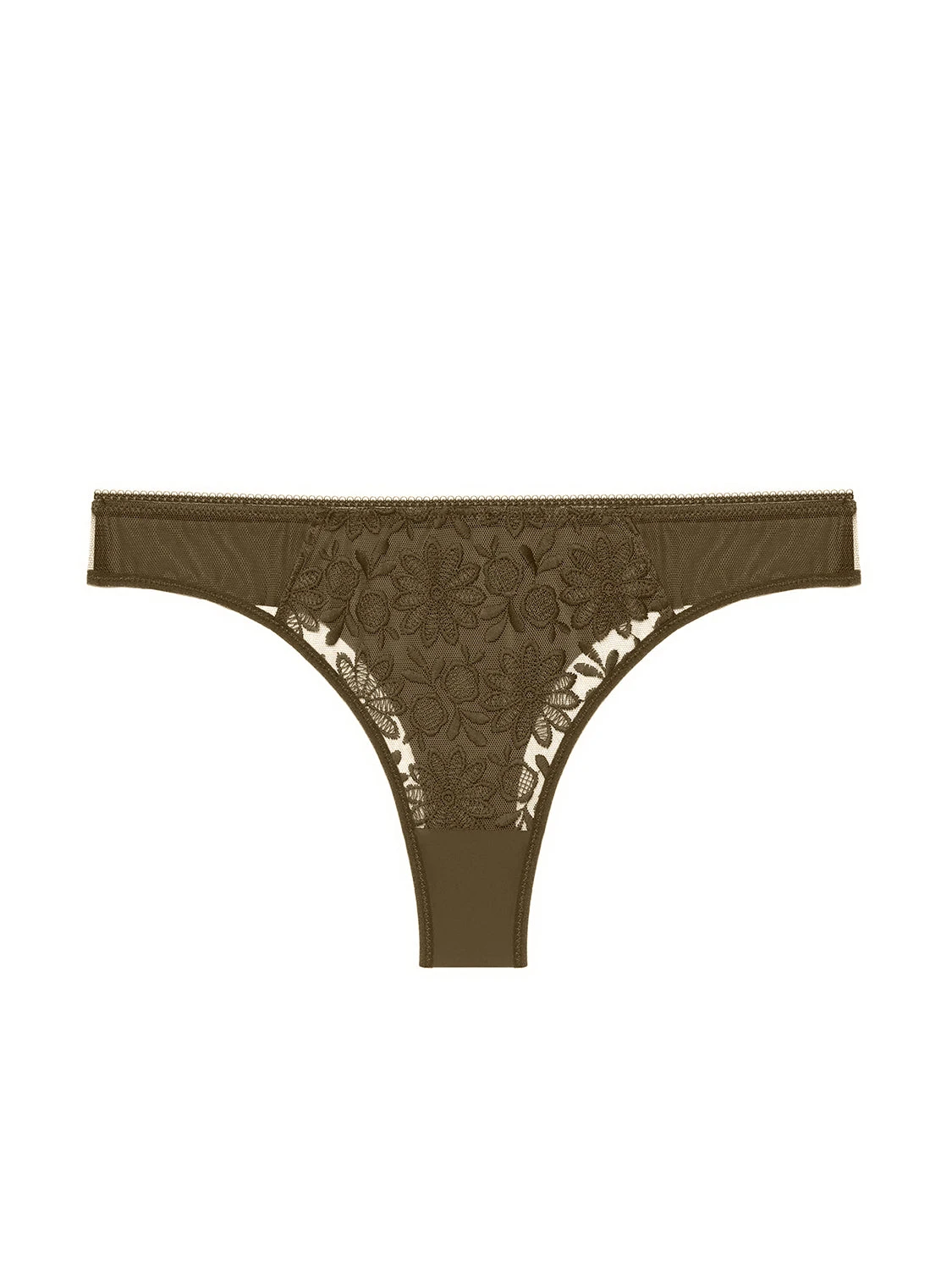A seductive low-rise brief crafted from sheer tulle, the Amazone is the one luxury undergarment every woman should own. Sheer yet sophisticated tulle, adorned with light-weight embroidery in an exuberant floral pattern, this g-string provides minimal coverage and comes with clean-cut seams for the ultimate in invisible wear.
