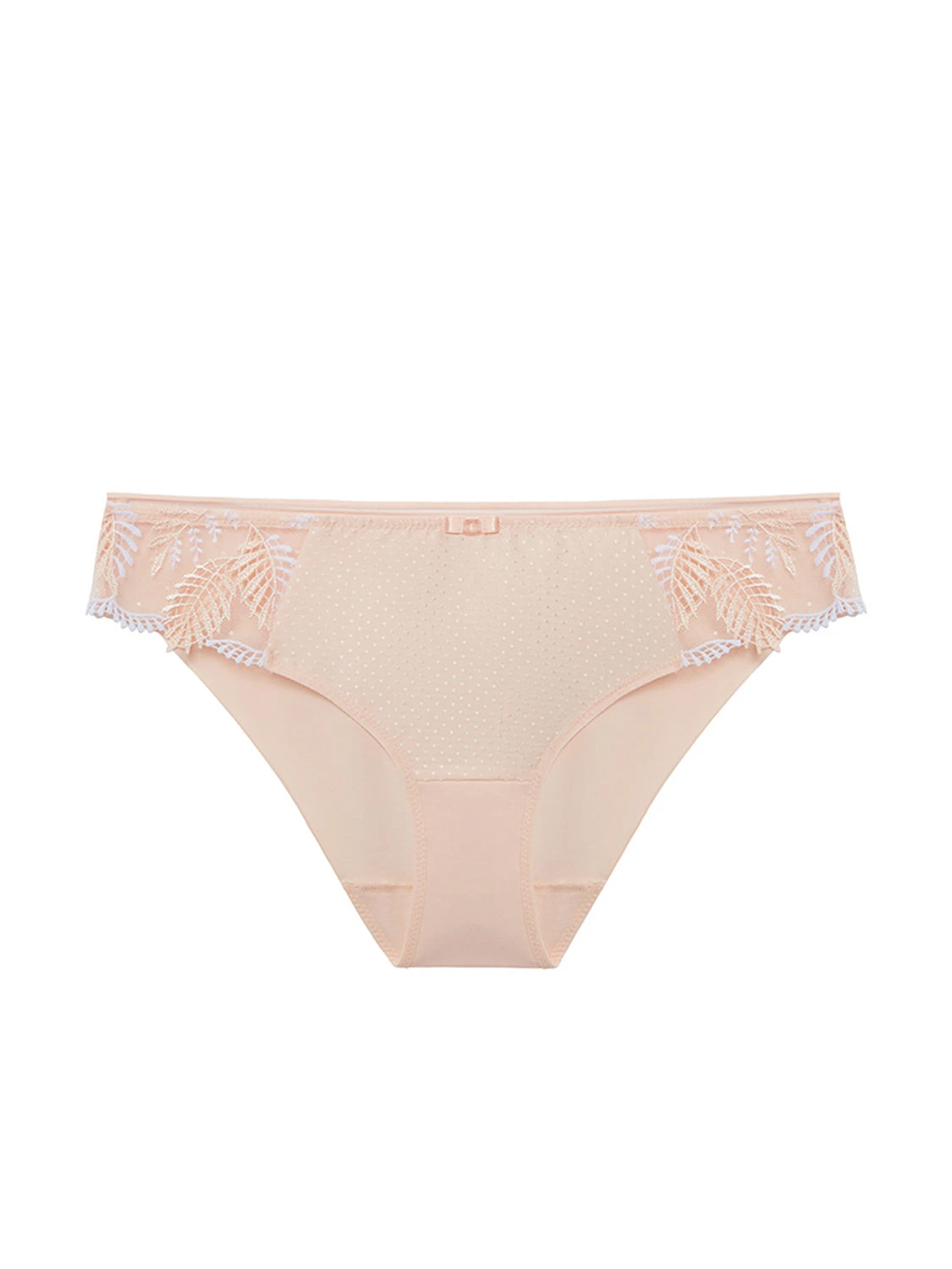 The Bloom Bikini Brief sings elegance, with Swiss embroidered side panelling and Italian dotted crรชpe detailing. This piece of lingerie is lightweight, breathable and barely-there, with a clean-cut knitted fabric back for an invisible result. Deeply comfortable and soft, these panties pair functionality with timeless sophistication through intricate detail. An elastic decorative trim hugs your waistline and a quaint bow adds the finishing touch.