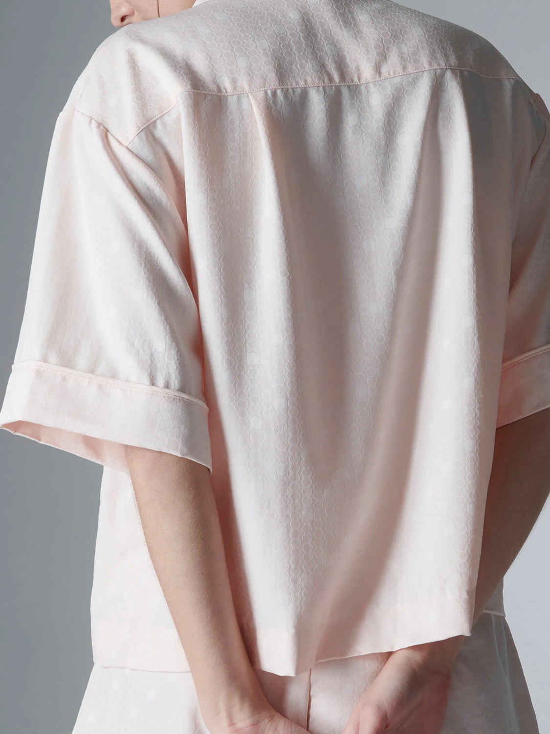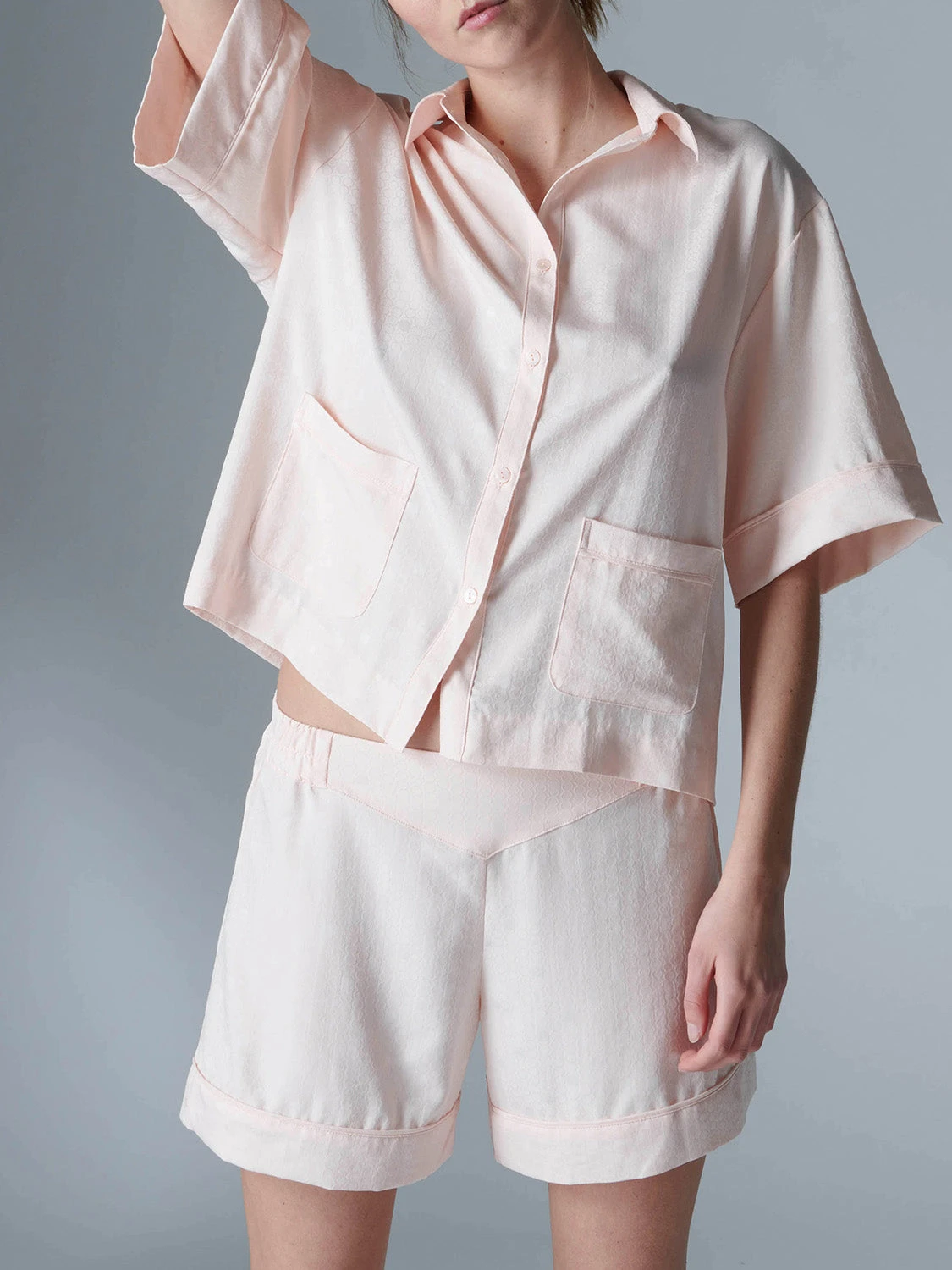 A sophisticated style that has comfort and elegance covered. The Caprice Short Sleeve is a classic night shirt, crafted from luxury satin Jacquard, in an all-over textured pattern featuring decoratively trimmed pockets. Feminine elegance meets maximum comfort in this tailored sleep style, suited for your best rest yet.