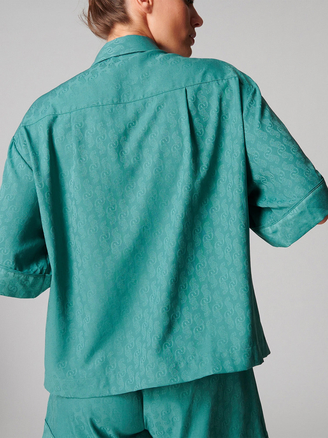 A sophisticated style that has comfort and elegance covered. The Caprice Short Sleeve is a classic night shirt, crafted from luxury satin Jacquard, in an all-over textured pattern featuring decoratively trimmed pockets. Feminine elegance meets maximum comfort in this tailored sleep style, suited for your best rest yet.