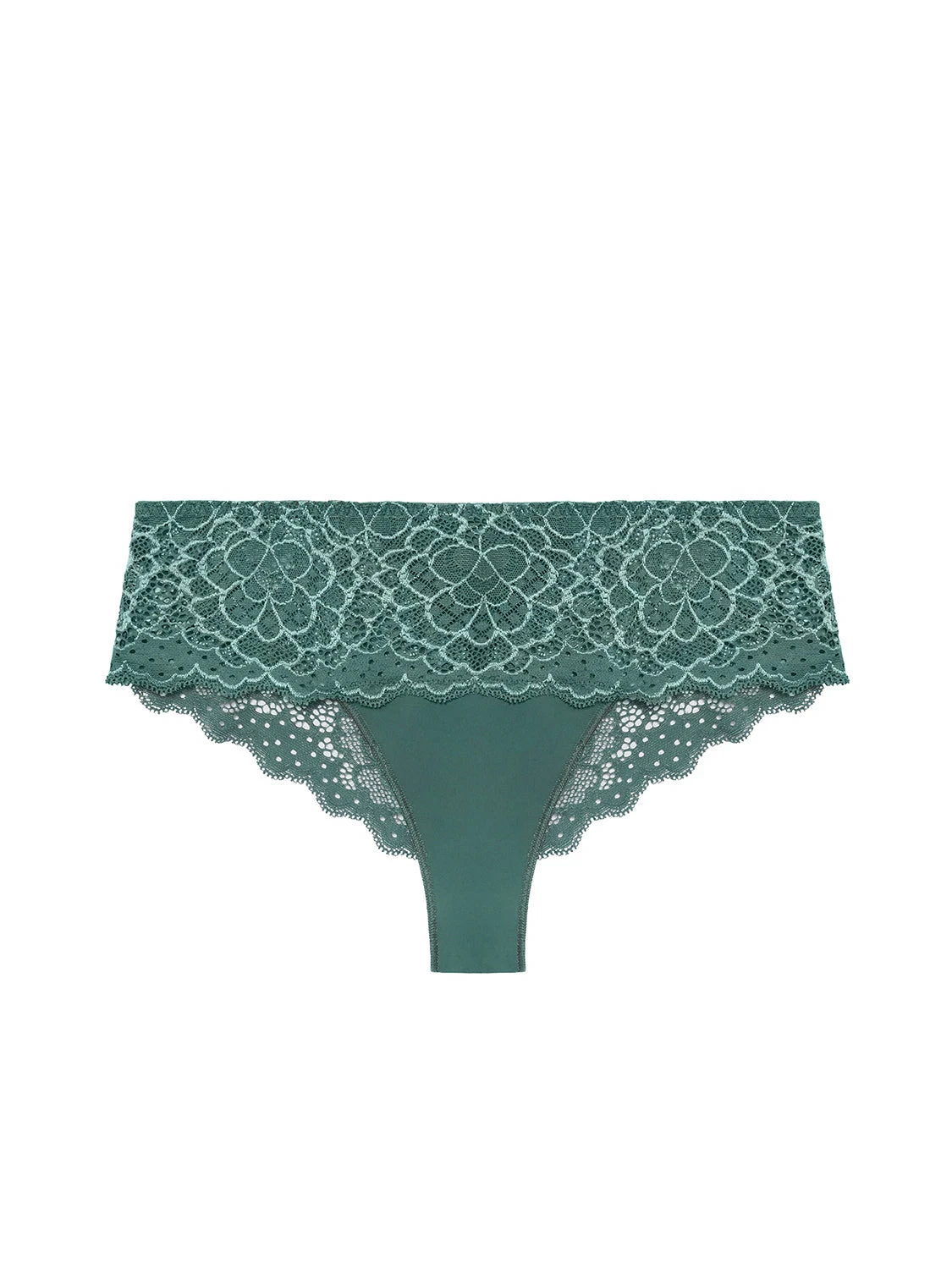 - All-over soft stretch lace with scalloped trim hugs curves for a flawless fit