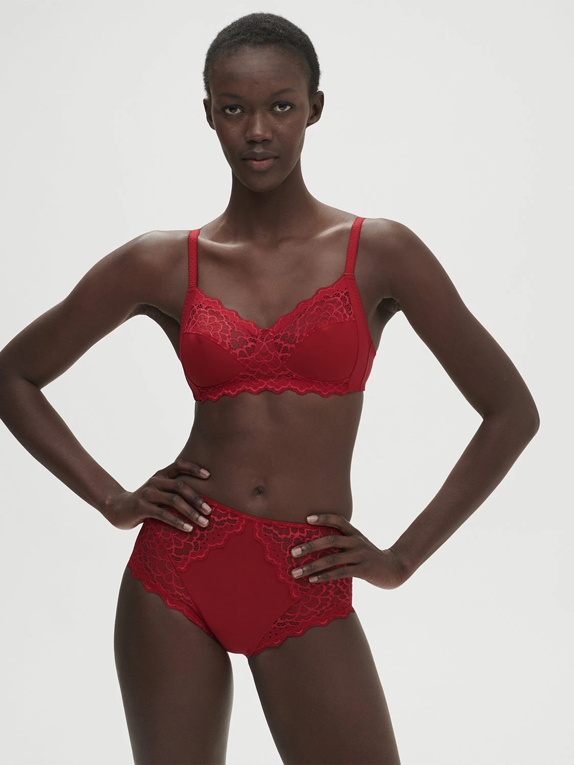 - Top part of cups are made of feminine lace reinforced with tulle; elastic trim for a custom fit