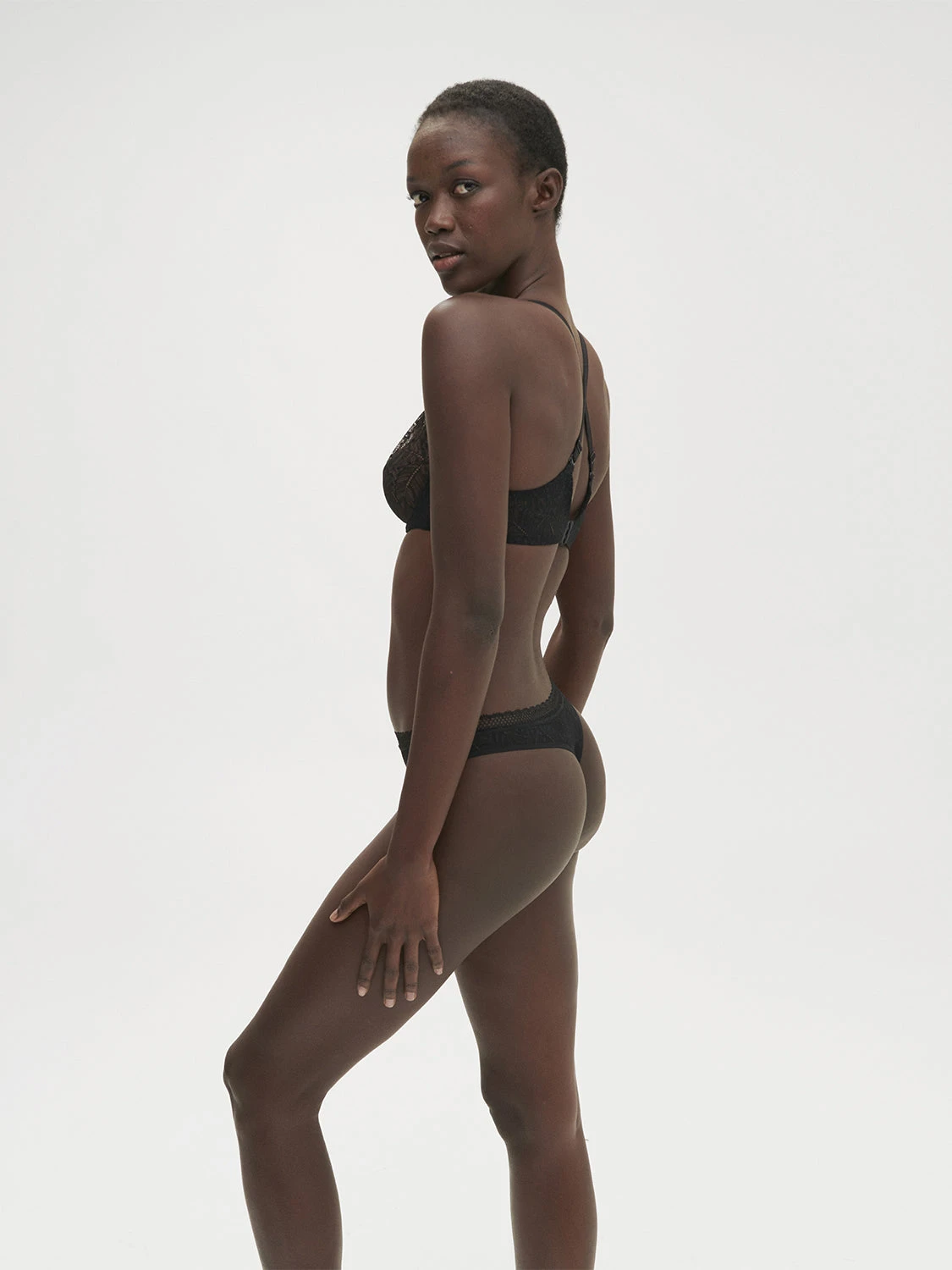 Less is more with the Comete Tanga. The Comete Tanga is as bold as it is lacy and delicate. The super fine flat binding across the thigh ensures maximum invisibility. The bobbin lace finishes across the waist anchor the piece with entrancing detail. And, of course, the Comete Tanga is cut to allow for minimal coverage and maximum vibrancy.