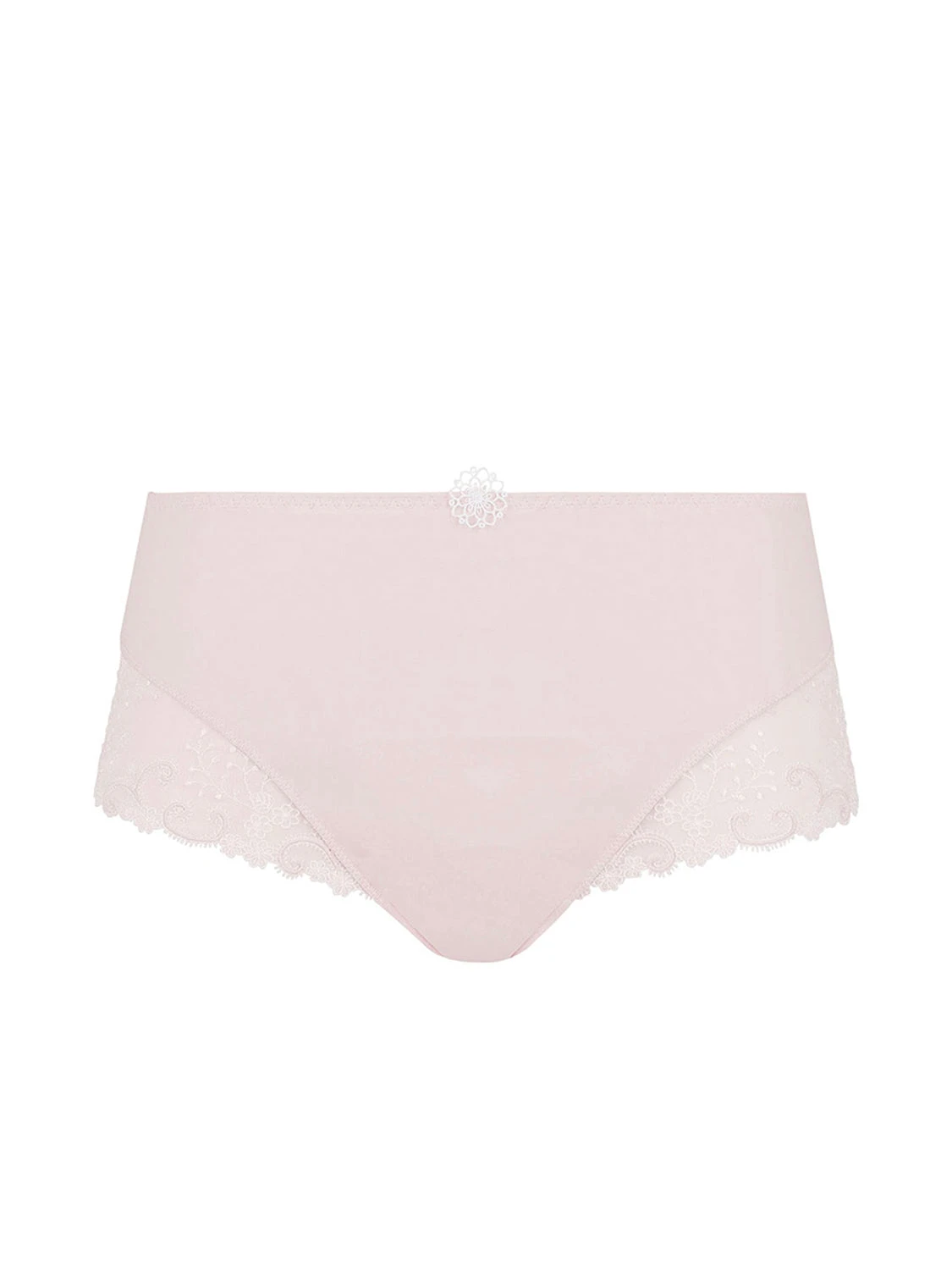 Start your day right in this reinvented classic embellished with Guipure lace. The Delice Culotte in natural gives classic white lingerie a confident, contemporary edge. A high cut flatters as cotton lining gives you support, while the stretch tulle sides make for a feminine finish. Experience versatility and comfort as you layer this high waisted high waisted underwear under a dark or colourful wardrobe.