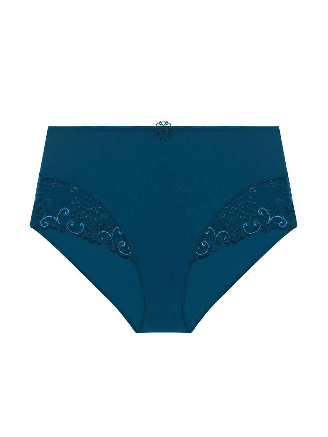 Start your day right in this reinvented classic embellished with Guipure lace. The Delice Culotte in natural gives classic white lingerie a confident, contemporary edge. A high cut flatters as cotton lining gives you support, while the stretch tulle sides make for a feminine finish. Experience versatility and comfort as you layer this high waisted high waisted underwear under a dark or colourful wardrobe.