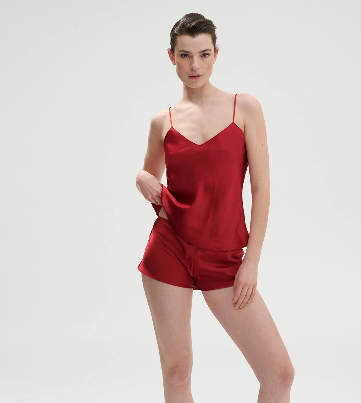 Flutter through the night, mademoiselle, in a style reminiscent of a silk French knicker. The Dream Night Short, made from pure silk, is a timeless piece of night-time luxury. Effortless, comfortable and eminently flattering, the French knicker shape is subtly fluted at the leg and shaped to lengthen your pins. This stunning lingerie can be paired with the matching Dream Camisole or Nocturne Camisole to complete the silk pyjamas set.