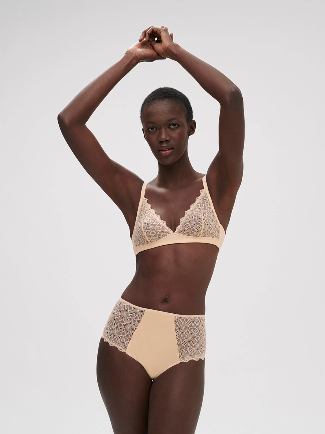 Part of the SIMONE CARES eco-friendly line the lace of this piece contains 62% of recycled polyamide from production