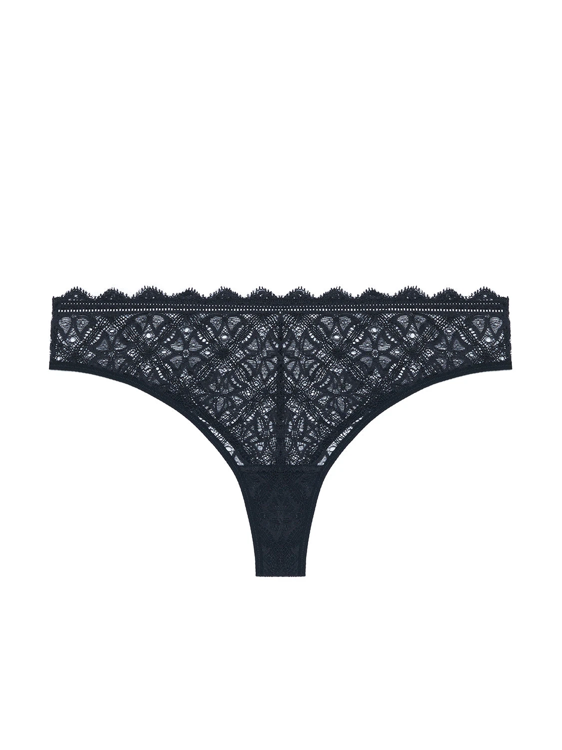 Make this understated Tanga your underwear must-have and you won’t be disappointed. Crafted from soft, sheer lace featuring an Art-Deco inspired pattern, the Escale Tanga is designed to flatter and seduce. Available in Black and Vanilla and trimmed with fine, elasticated organza around the thighs, this minimalist brief stays in place for comfortable day to night wear, whilst a low-cut waist – scallop-edged for added style – ensures it’s seamless under clothing.