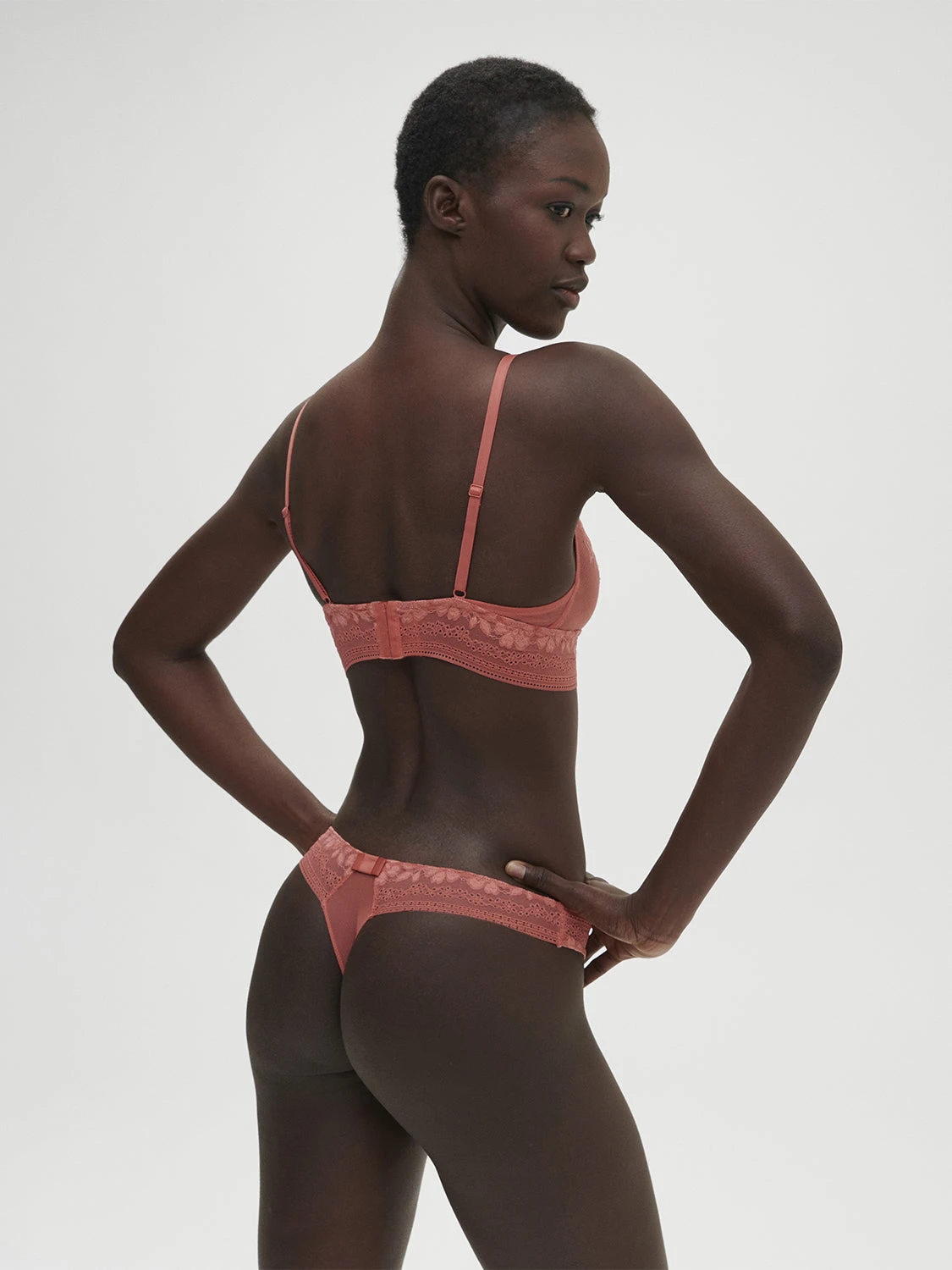 Part of the SIMONE CARES eco-friendly line the lace of this piece contains 50% of recycled polyamide from production remnants. The tulle of this piece contains 86% of recycled polyamide from production remnants.