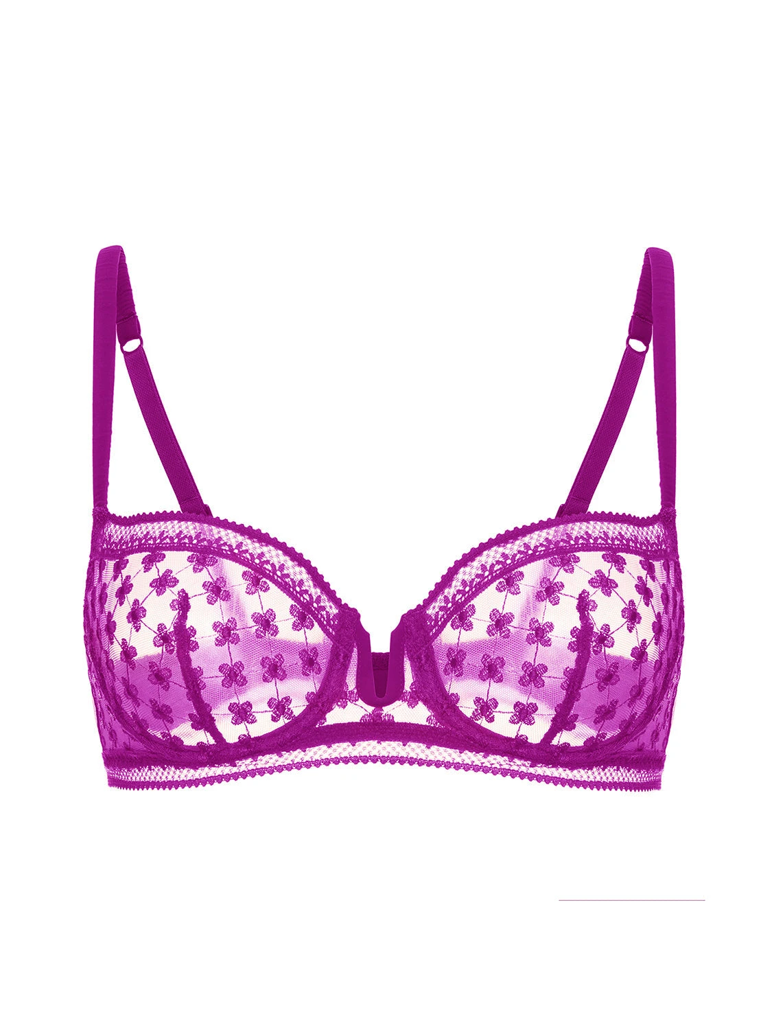- Sheer cups in floral embroidery