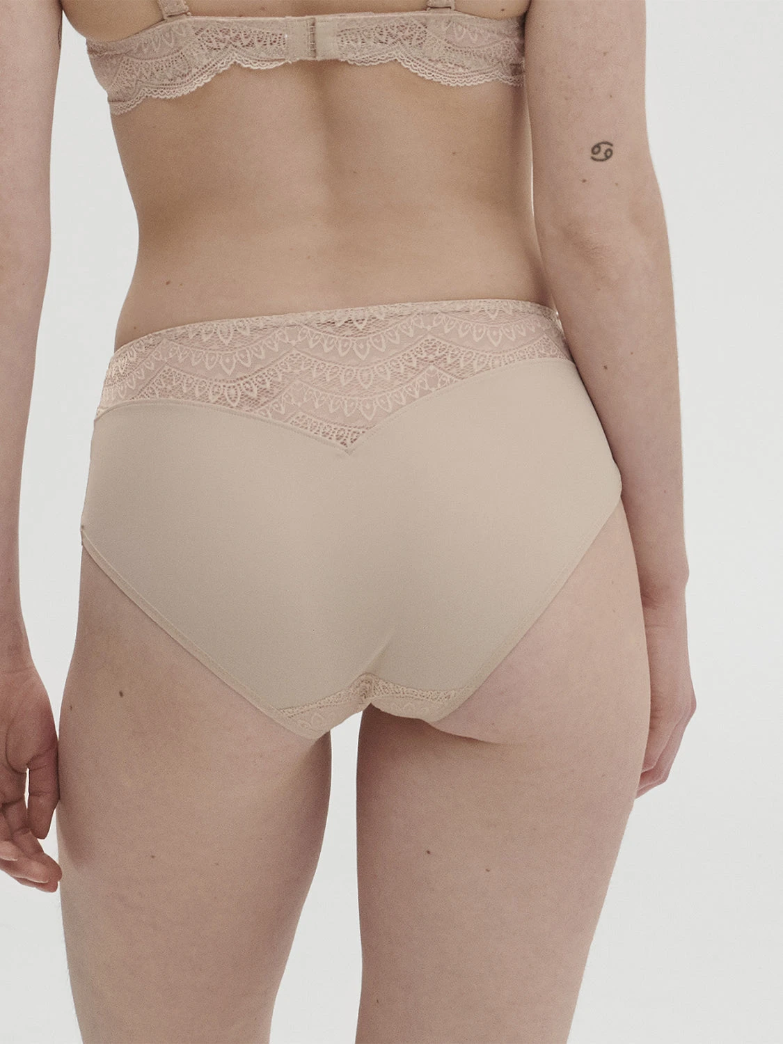 Italian lace with timeless appeal. The Karma Culotte Brief marries delicate Italian jacquard lace, cotton and ultra soft knitted fabric for a sleek retro brief. This high-waisted panty will have you feeling sexy and sleek with its delicate patterns and attention to detail. The cotton-lined front adds comfort and opacity, while the opaque backing and very fine organza elastic trimmings hug your thighs for an invisible fit under clothing.