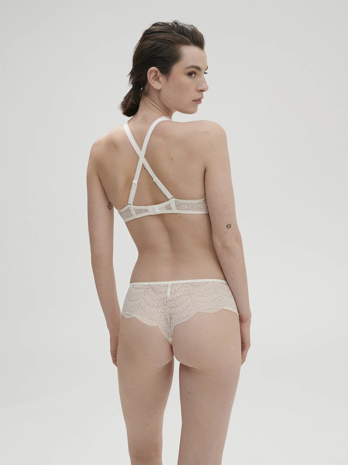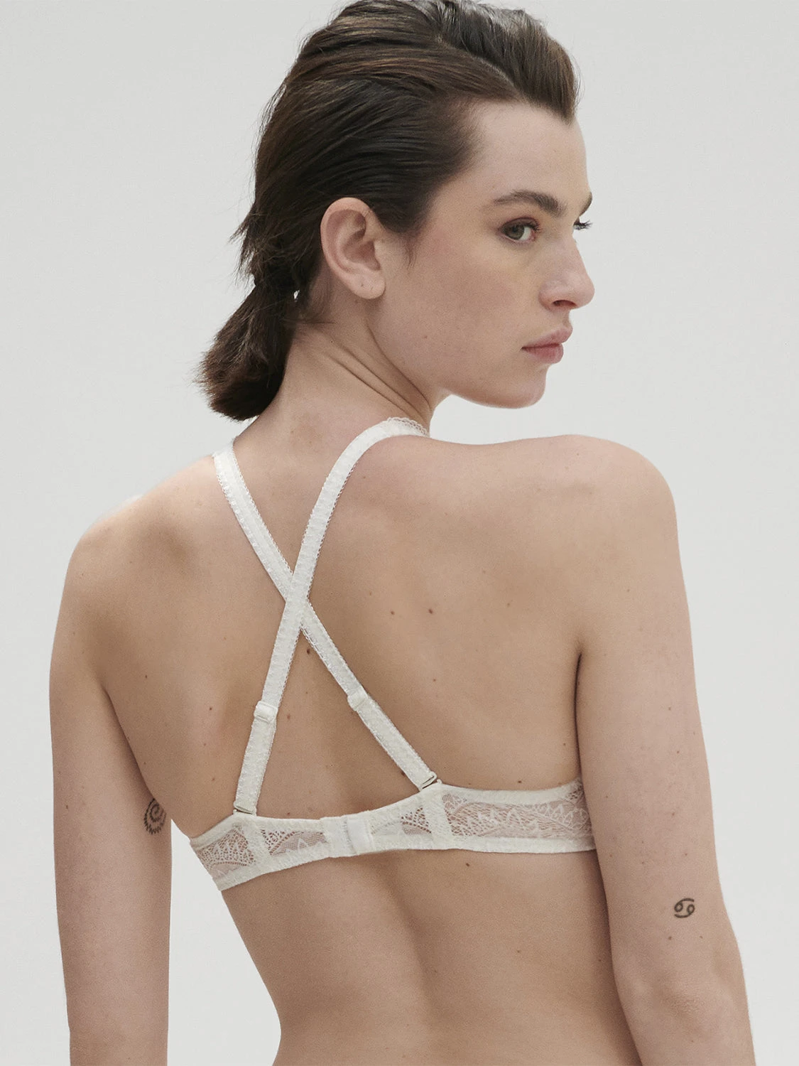 For those everyday lacey moments. The Karma Wirefree Bra is crafted with Italian jacquard lace for a triangle bralette that enhances your natural shape. The plunging neckline adorned with scalloped lace adds a sexy touch, while the small underbust band and wires along your side provide support. This everyday elegance suits any body shape with its flattering, natural fit. And the multiway straps allow you to pair it with any outfit.