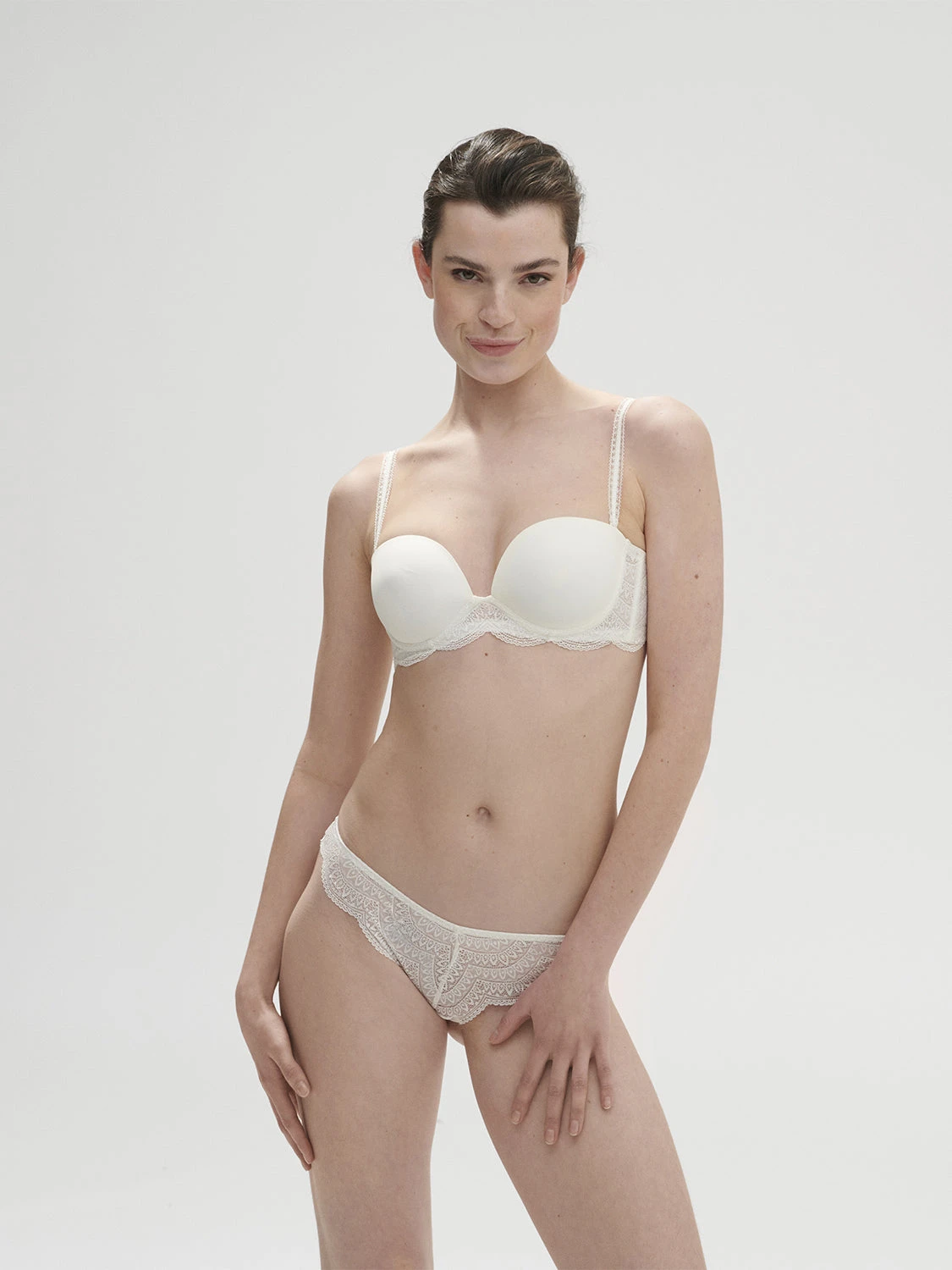 Seduced by Italian jacquard lace. The Karma Tanga Brief is crafted entirely from Italian jacquard lace. The scalloped lace along the edges and back create a stunning silhouette and ensures that the brief is invisible under clothes. Feel wrapped in an effortless style that is both seductive and feminine.