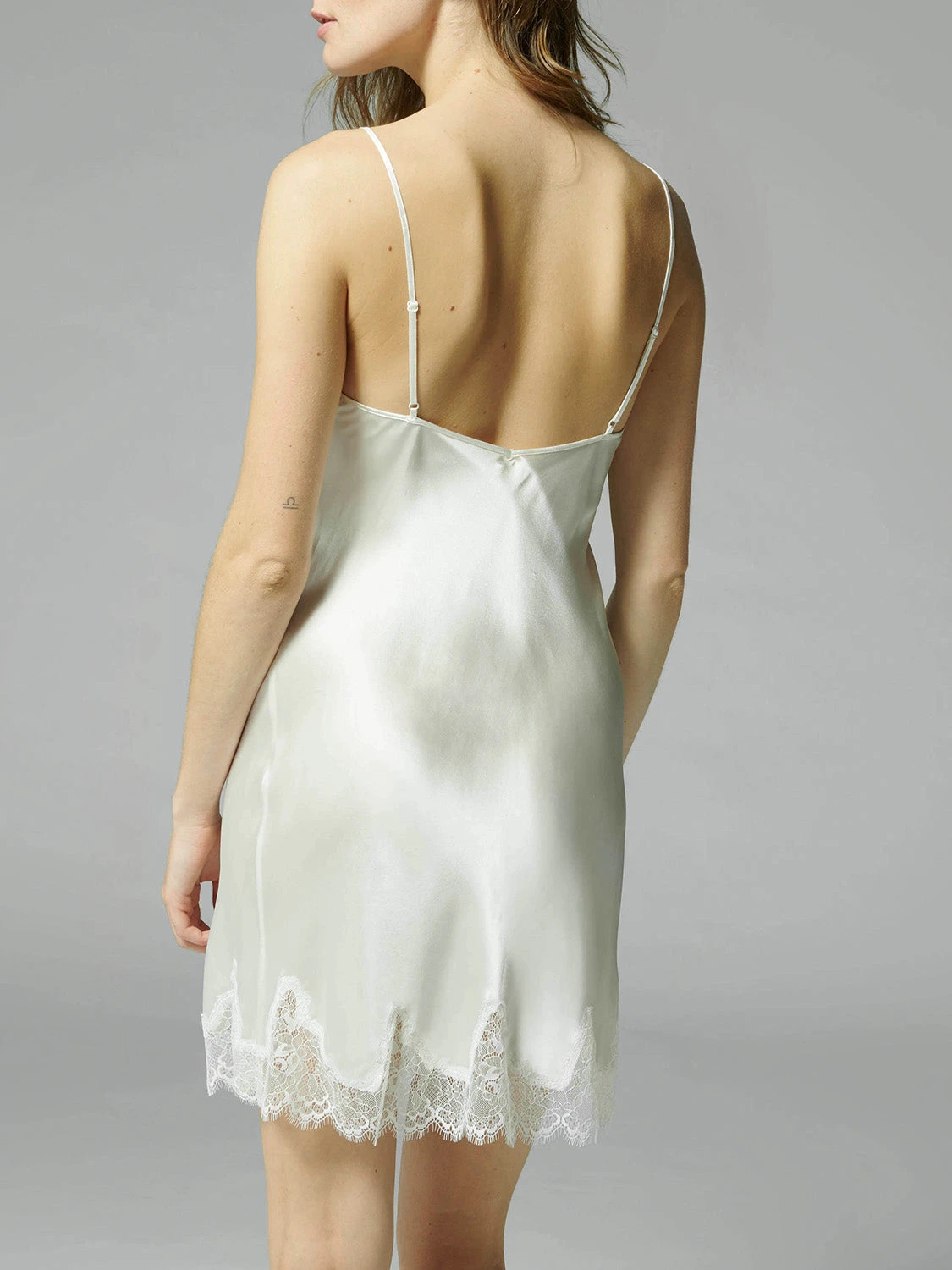 Lose yourself to a world of after-dark Parisian glamour with satin, lace and French-rolled seams. The Nocturne Chemise in makes a pleasure of the night. Drape yourself in satin finished with French-rolled seams, delicate lace trim and a band of tulle that highlights the neckline and frames your dรฉcolletage. Linger a while in this intimate piece of nightwear to truly feel its spoils. Add a little extra flair to your silk pyjamas with this sophisticated chemise.