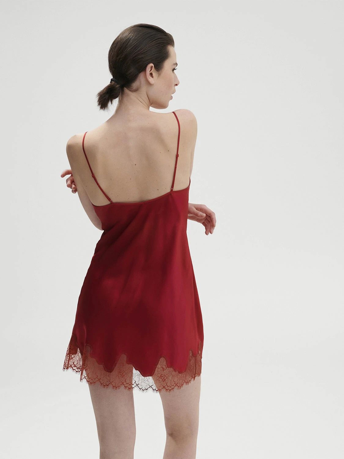 Lose yourself to a world of after-dark Parisian glamour with satin, lace and French-rolled seams. The Nocturne Chemise in makes a pleasure of the night. Drape yourself in satin finished with French-rolled seams, delicate lace trim and a band of tulle that highlights the neckline and frames your décolletage. Linger a while in this intimate piece of nightwear to truly feel its spoils. Add a little extra flair to your silk pyjamas with this sophisticated chemise.