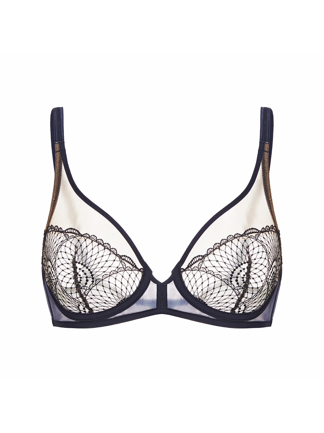 - Sheer stretch tulle underbust band is lined for extra support from D cup