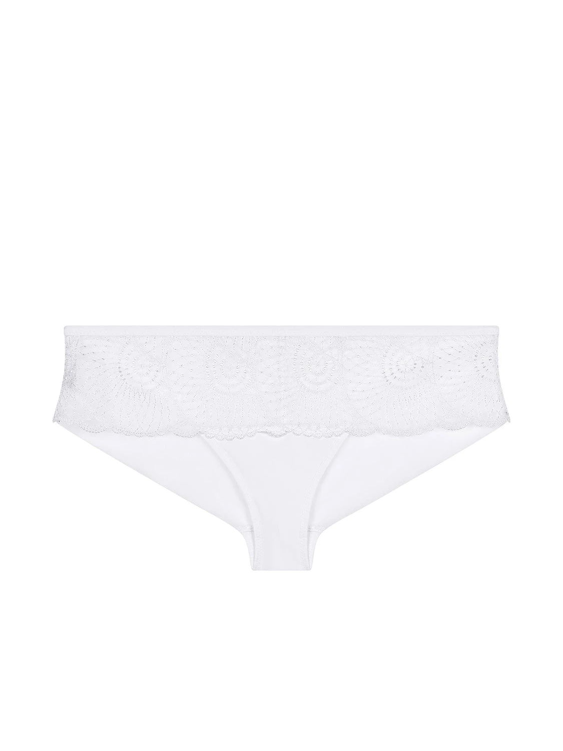 A shorty for โfeel goodโ moments. With its knitted front and pleated tulle back, the Reflet Shorty Brief features a touch of embroidery as well as opaque, cotton-lined knitted fabric at the bottom. Designed to sit midrise, this boyleg underwear has a flattering cut that creates a naturally round shape, with half cheek coverage and a pleated tulle back so the lingerie sits invisibly under clothing.