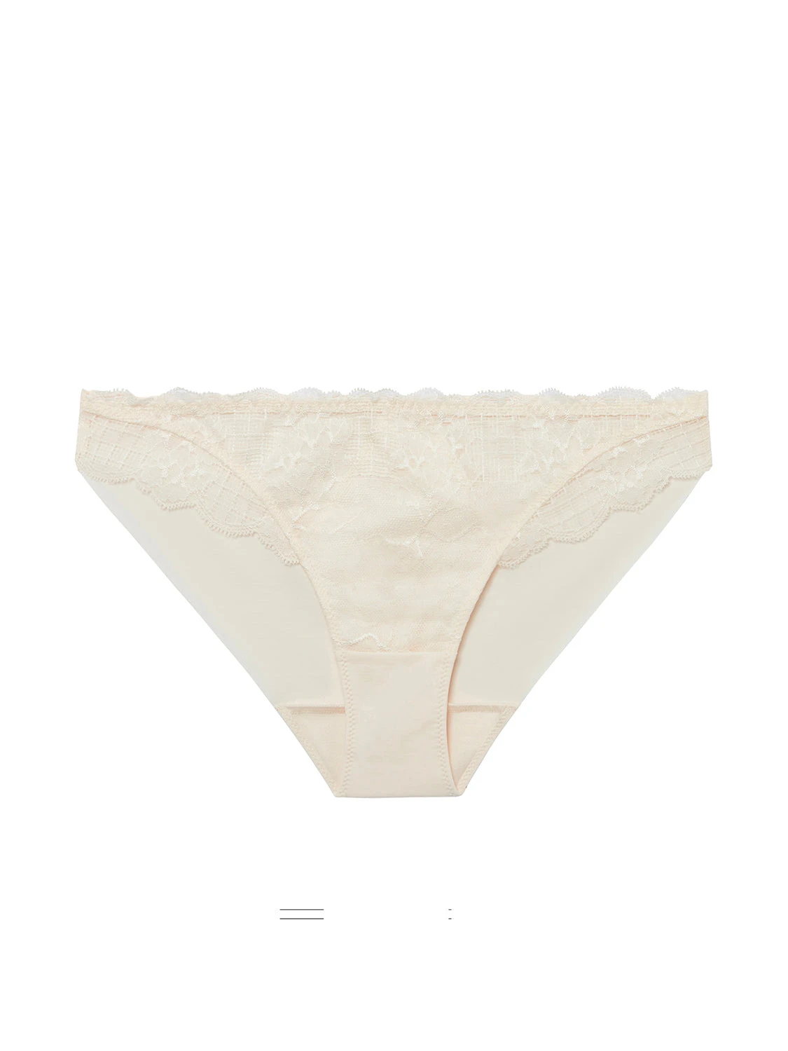 - Lace front with scalloped trim on waist and top of thighs, cotton lining