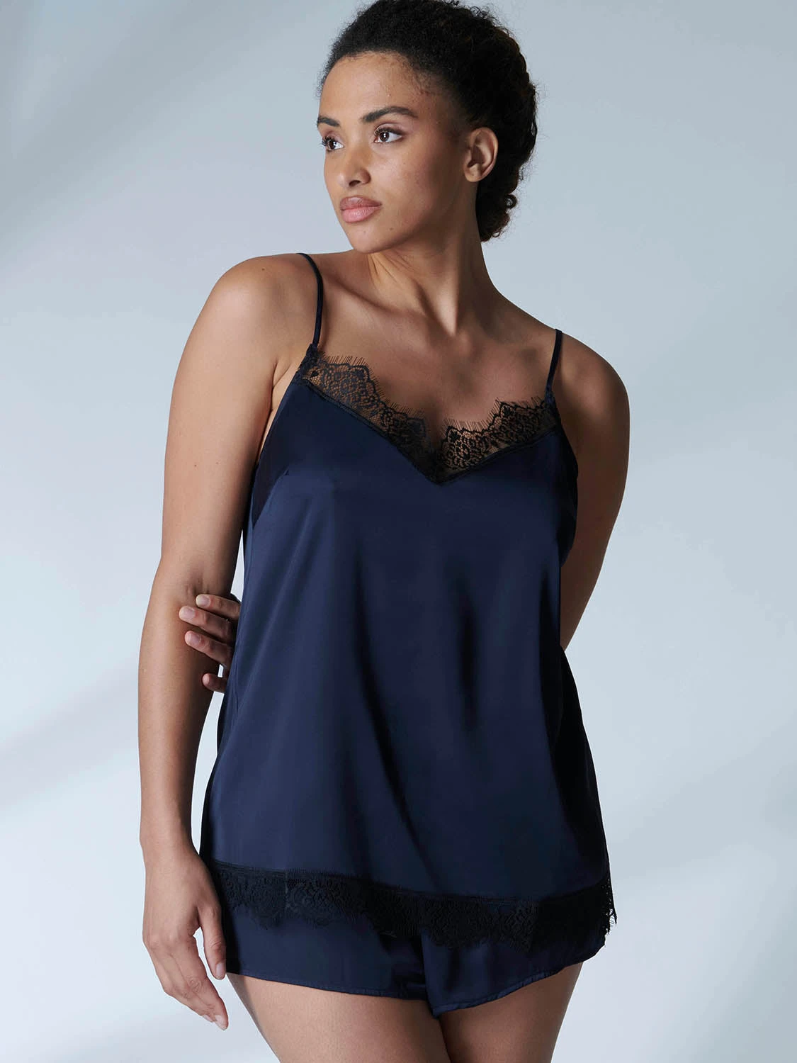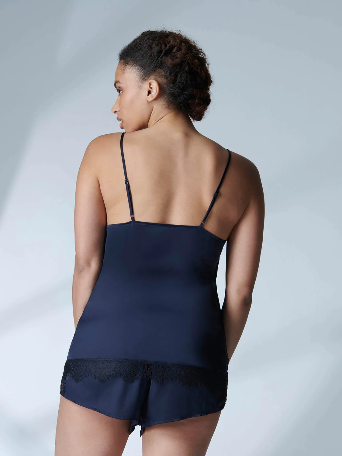 Feminine satin meets Parisian glamour. Meet the Satin Secret Camisole, where elegance and seduction are forged by irresistible satin and fine lace detailing. Let the plunging neckline caress your bust with beautiful lace detailing, while smooth satin brushes past your skin. Wear this versatile camisole as a statement piece for a seductive look, or as comfortable evening wear, knowing itโs easy to slip into, easy to slip out of, and easy to care for.