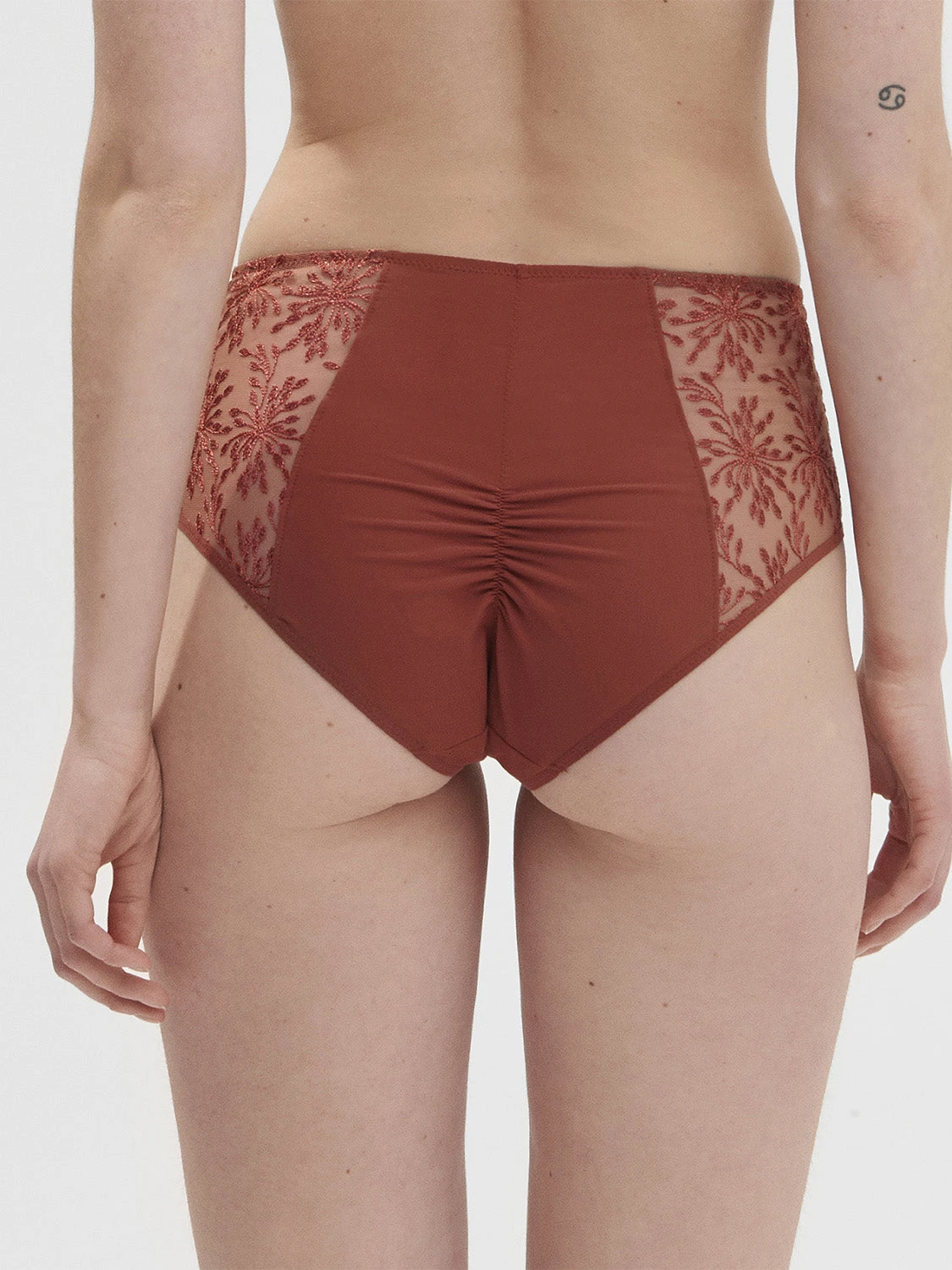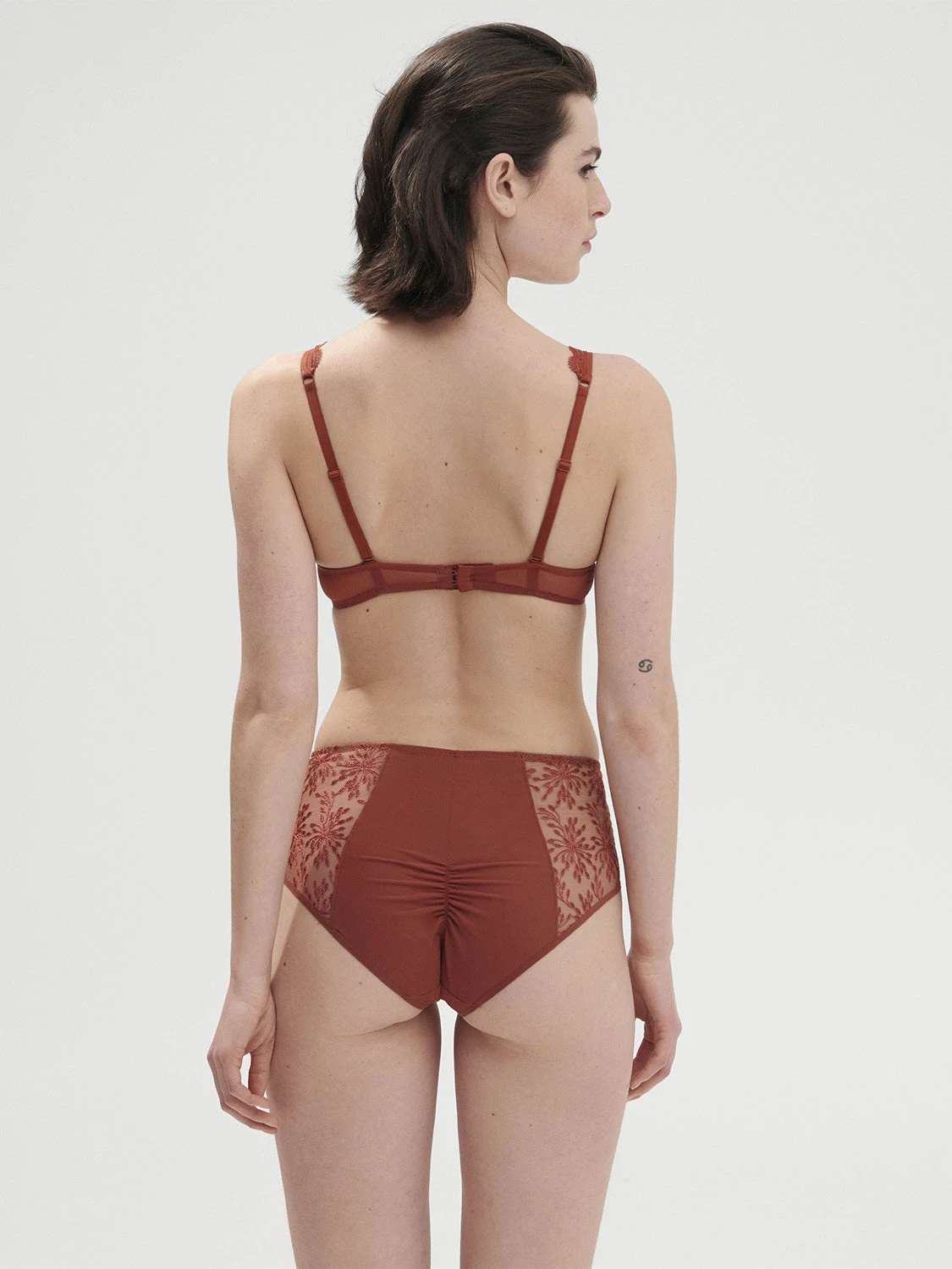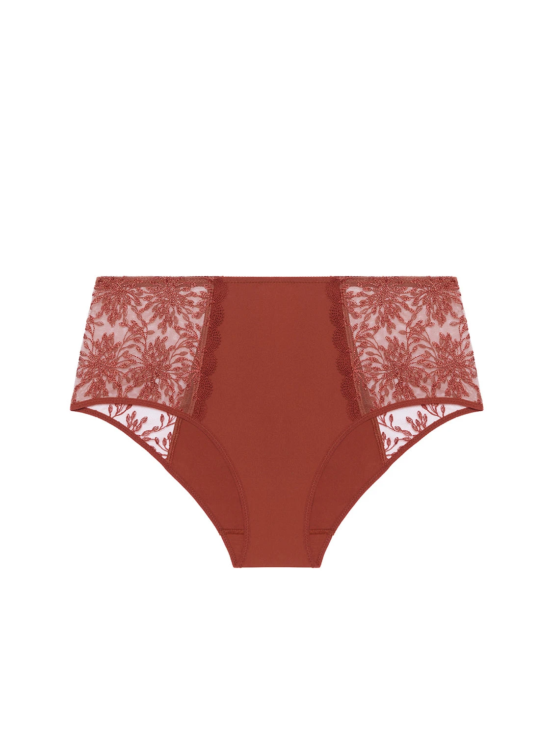 A romantic revival. The Singuliere Culotte is a vintage-inspired cut with modern sensibilities. Featuring opaque mesh panelling, subtle ruching at the back and fully embroidered Leavers lace sides, this high-waisted design hints to old school glamour with an elegant touch. Covet full coverage with a contemporary feel and haute couture detailing.