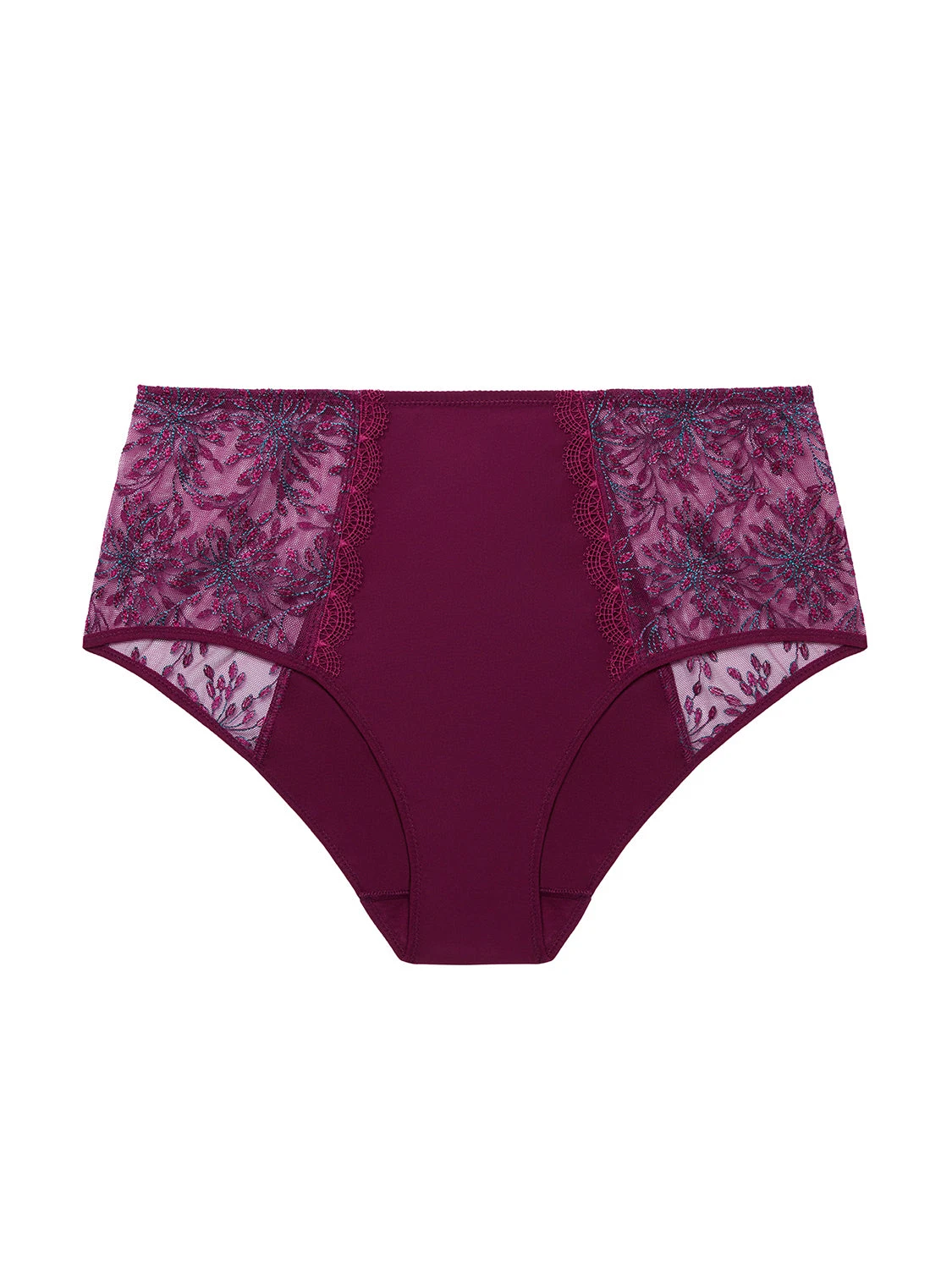 A romantic revival. The Singuliere Culotte is a vintage-inspired cut with modern sensibilities. Featuring opaque mesh panelling, subtle ruching at the back and fully embroidered Leavers lace sides, this high-waisted design hints to old school glamour with an elegant touch. Covet full coverage with a contemporary feel and haute couture detailing.