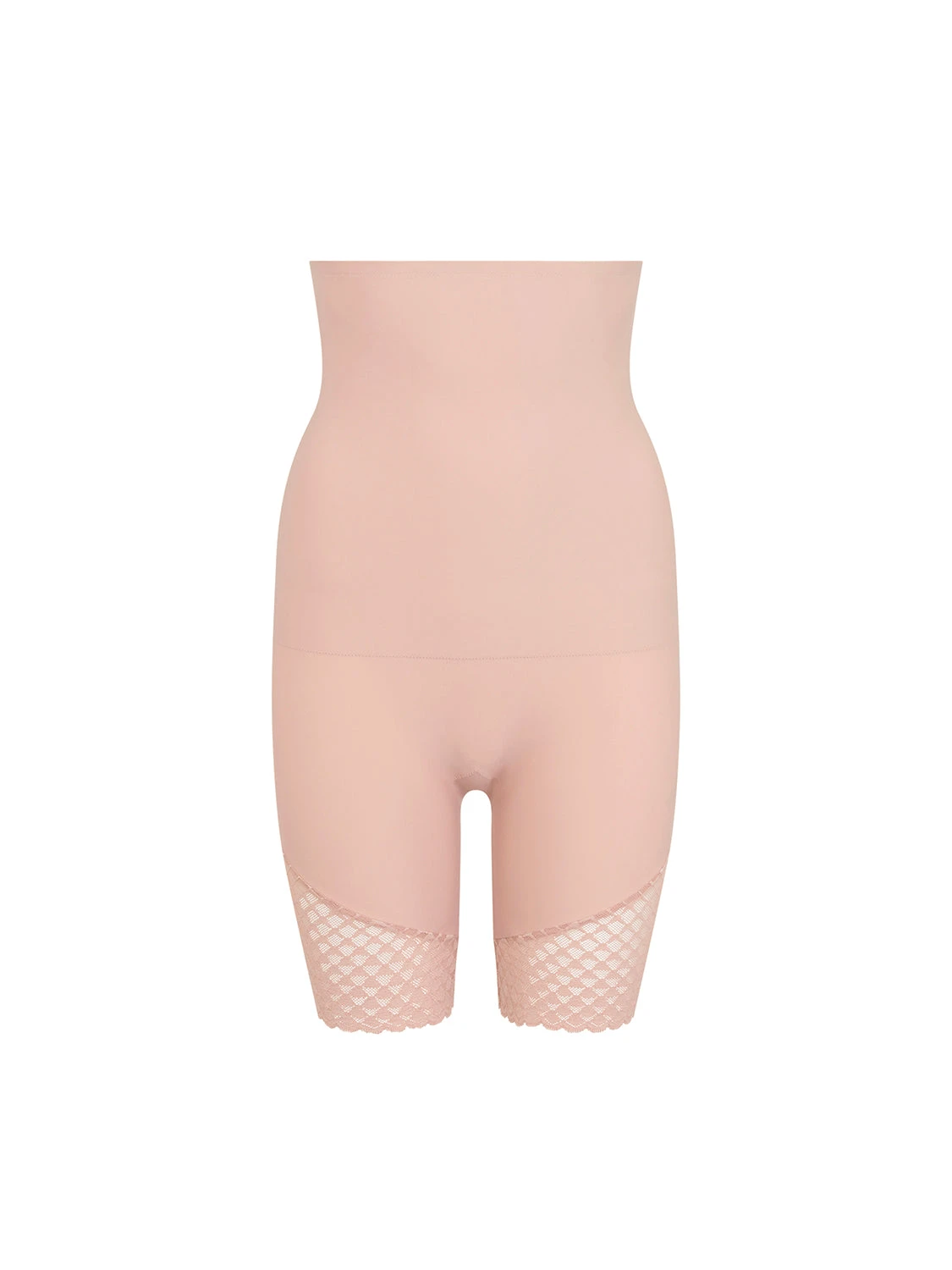 For a smoothing touch. The Subtile High Waist Shaper Shorts are crafted with responsive knitted fabric and French lace for a figure-hugging effect. These body-shaping shorts flatten the tummy, smooth out the hips and upper thighs, and sculpt the derrière. Simone Pérèle utilises feminine lacing around the thighs, with a scalloped trim for a feminine look. And for ultimate comfort and functionality, a silicone strip lines the elasticated inner-band around the waist to prevent slipping.
