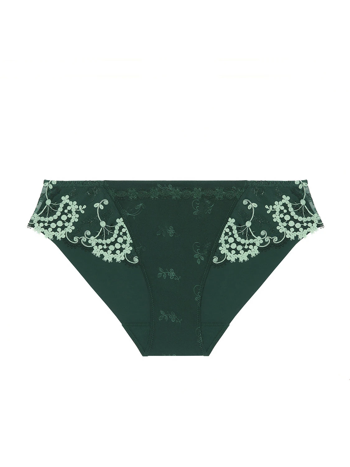 French chic has never been so effortless. This exquisite bikini does it all: the front is made of ultra-soft stretch Italian Jacquard with panels of floral embroidery on sheer. Ensuring a flawless finish, the back is made entirely of curve-hugging skin-soft microfiber with stitch-free bonding that’s seamless under clothes.
