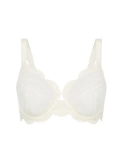 This romantic Half Cup Bra is a daringly beautiful balconette bra. The ultra-soft cups are intricately crafted with Guipure lace, while a high centre ribbon offers decorative support. This white lace bra is best suited to fine fabrics and low necklaces for a little added feminine flair.
